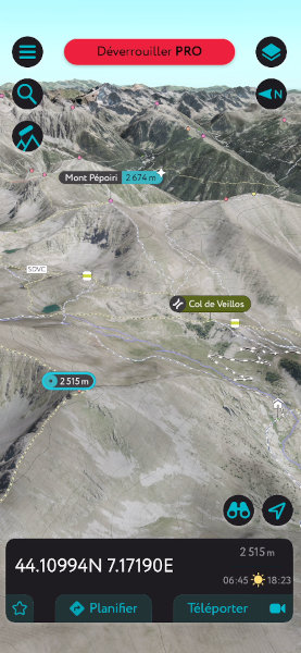 Appli commerciale alternative pour l’affichage de panoramas, PeakVisor propose une solution 3D gratuite sur mobile utilisable pour le relevé de coordonnées.