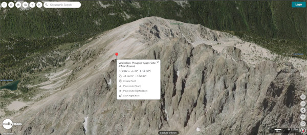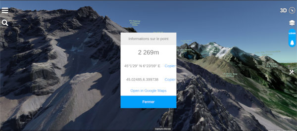 On utilisera l’appli web sur ordinateur pour relever des points 3D assez précis sur la carte topo affichée en 3D.